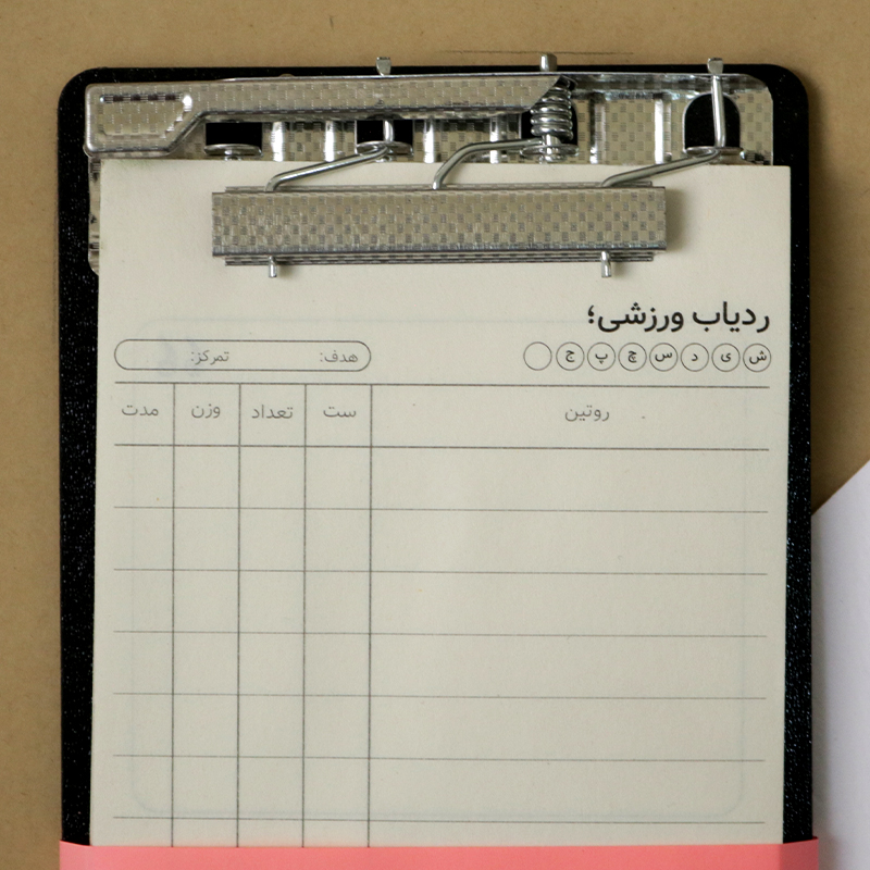 «دستیار ردیاب ورزش» برای تمام کسانی طراحی شده که می‌خواهند از تمرینات خود بهترین بهره را ببرند. این دفترچه‌ی جمع‌وجور همراه شما به باشگاه، پیست دویدن یا سالن یوگا می‌آید و همه‌چیز را ثبت می‌کند تا هیچ‌چیزی از قلم نیفتد. در هر صفحه می‌توانید نام حرکت، تعداد ست، تکرار، وزنه و زمان استراحت را بنویسید. بخش‌های ویژه‌ای هم برای ثبت تمرینات هوازی، مسافت، سرعت و حس‌و‌حال شما در نظر گرفته شده است.